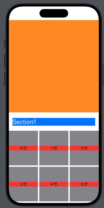/* * List: 일반적 목록 배열 방식(일반적인 수직 방향으로 목록 표출) * Grid: box 형태로 나타내는 배열 방식(가로 세로 방향으로 사진 배열 같은 형태 표출) */ // LazyVGrid // columns 의 갯수를 3개로 설정 // .flexible() -> Single Flexible Item 그 크기를 화면 프로엠이 맞춰줌 // .flexible(minimum: 10, maximum: .infinity) let columns: [GridItem] = [ GridItem(.flexible(), spacing: 6, alignment: nil), GridItem(.flexible(), spacing: 6, alignment: nil), GridItem(.flexible(), spacing: 6, alignment: nil), ] var body: some View { // 1 - LazyVGrid ScrollView { // Hero 부분 (위에 사진 부분) Rectangle() .fill(Color.orange) .frame(height: 400) LazyVGrid( columns: columns, alignment: .center, spacing: 6, pinnedViews: [.sectionHeaders]) { // Section 1 Section( header: Text("Section1") .foregroundColor(.white) .font(.title) .frame(maxWidth: .infinity, alignment: .leading) .background(Color.blue) .padding() ) { ForEach(0..<20) { index in Rectangle() .fill(Color.gray) .frame(height: 150) .overlay( Text("\(index) 번") .frame(maxWidth: .infinity) .background(Color.red) ) } } //: Section 1 // Section 2 Section(header: Text("Section2") .foregroundColor(.white) .font(.title) .frame(maxWidth: .infinity, alignment: .leading) .background(Color.red) .padding() ) { ForEach(0..<20) { index in Rectangle() .fill(Color.green) .frame(height: 150) .overlay( Text("\(index) 번") ) } } //: Section 2 } } // :1번 }